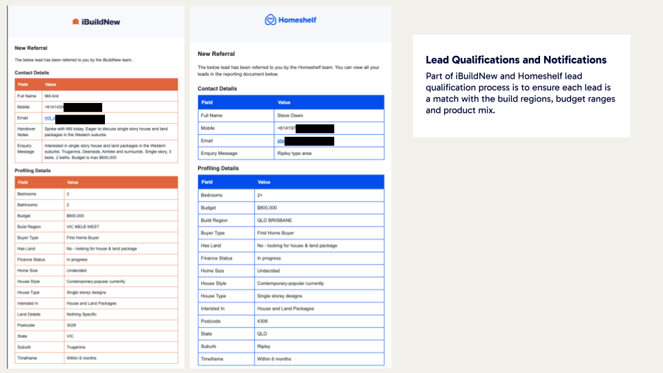 Once a lead is qualified as the right fit for your business the contact details and build preferences can be passed into your systems via any of the below methods.